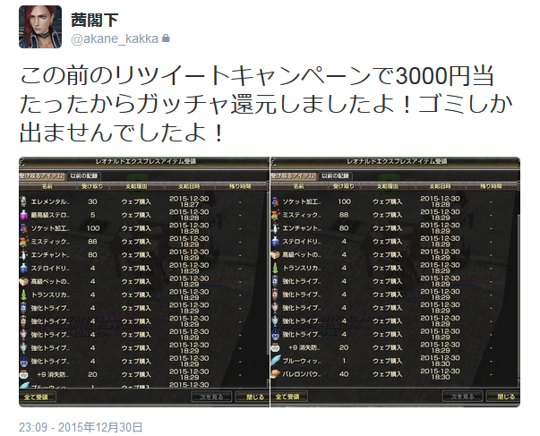 うちの党でわたしと旦那のゲーム内メールボックスにだけこんなん届いてましたけどもぉ・・・